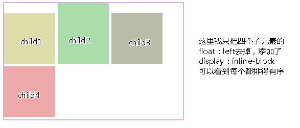 >>从图3,4可以看出浮动的局限性在于,若要元素排满一行,换行后还要整齐排列,就要子元素的高度一致才行,不然就会出现图三的效果,而inline-block就不会。